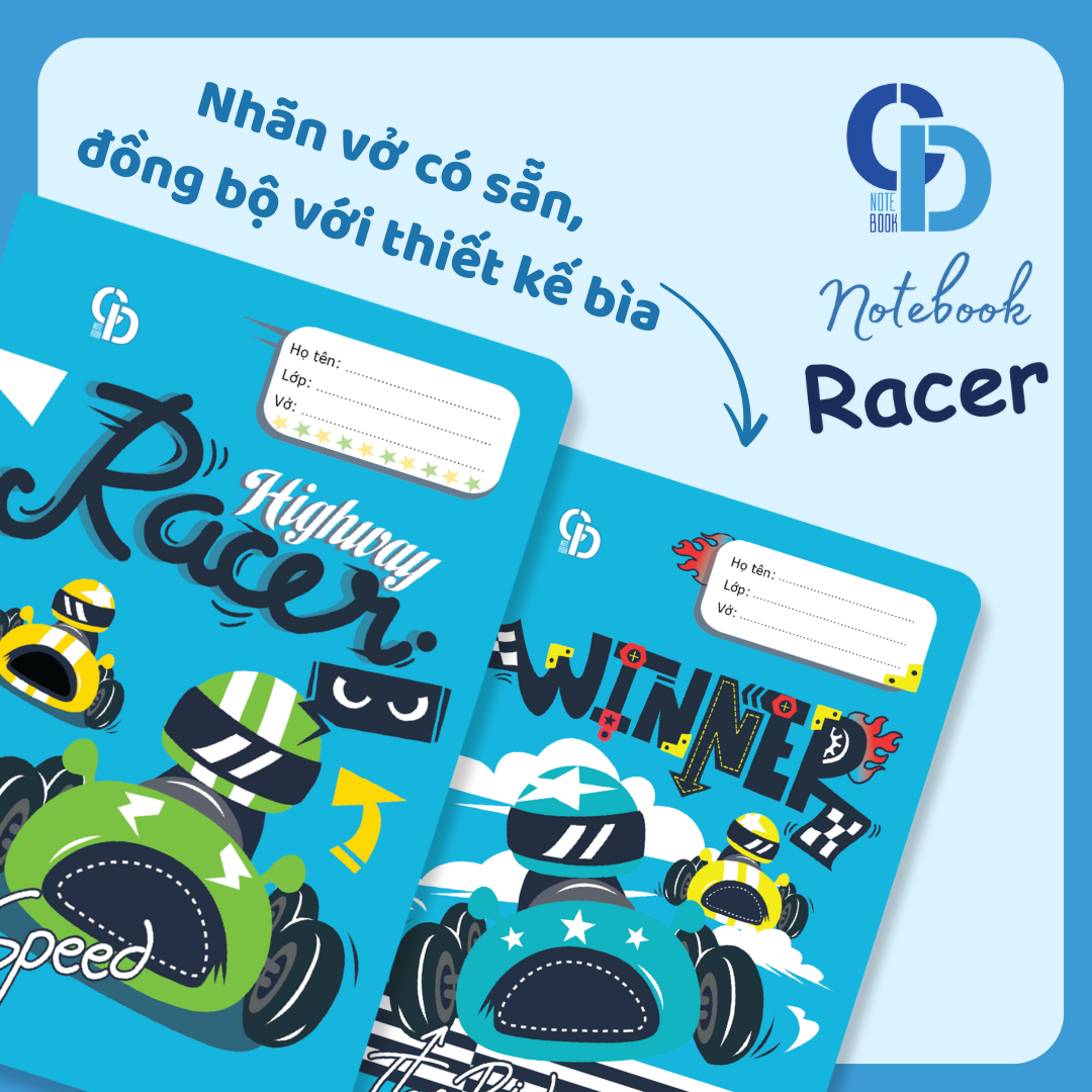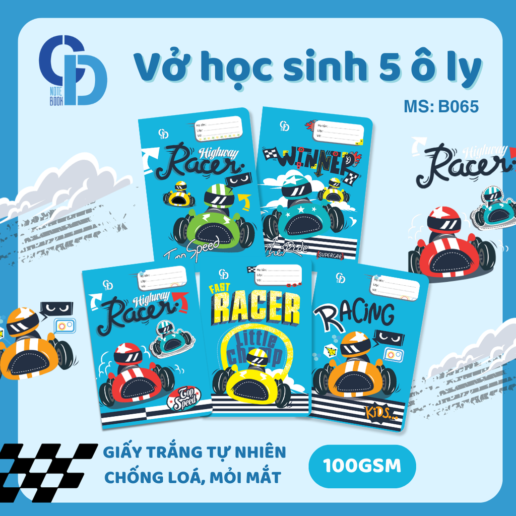 - Tên sản phẩm: Vở 5 ly CD NoteBook Racer Xanh dương 48 trang 100GSM - Mã số: B065