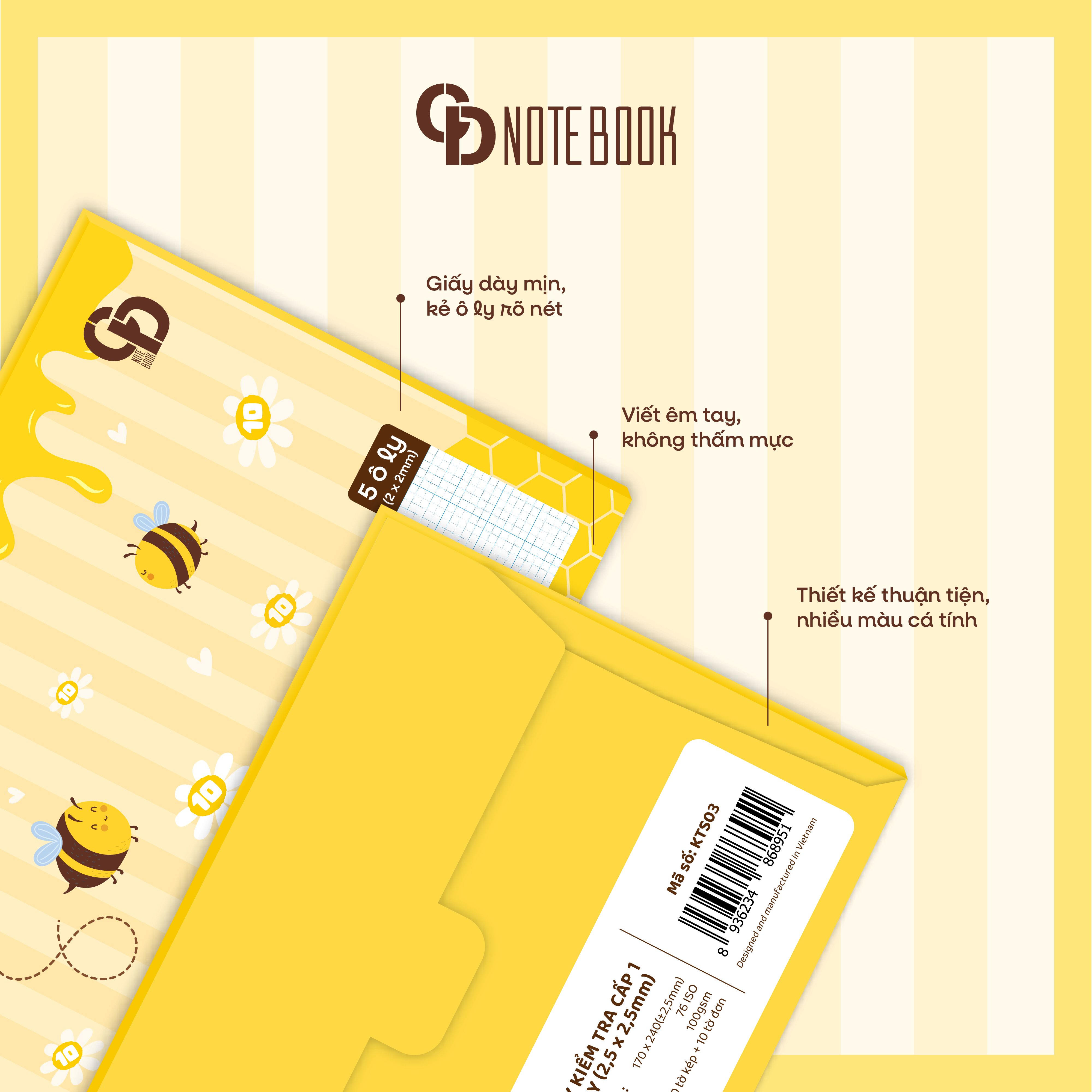 KTS04 - Giấy kiểm tra Bee, 5 ô ly, 10 tờ đơn - 10 tờ kép , ĐL: 100