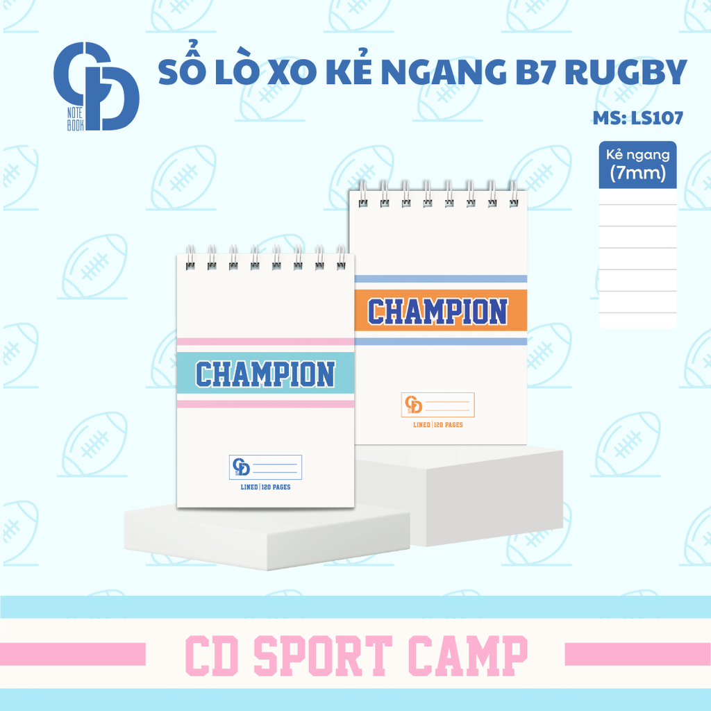 LS107 - Sổ lò xo Sport Rugby, B7, Giấy kẻ ngang, 120tr, ĐL: 100