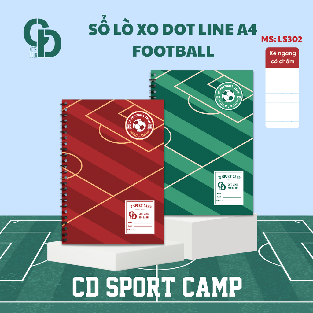 LS302 - Sổ lò xo Sport Football, A4, Giấy kẻ ngang chấm, 200tr, ĐL: 100
