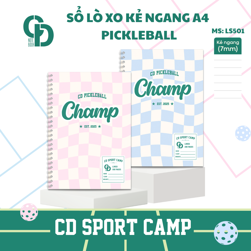LS501 - Sổ lò xo Sport Pickleball, A4, Giấy kẻ ngang, 200tr, ĐL: 100