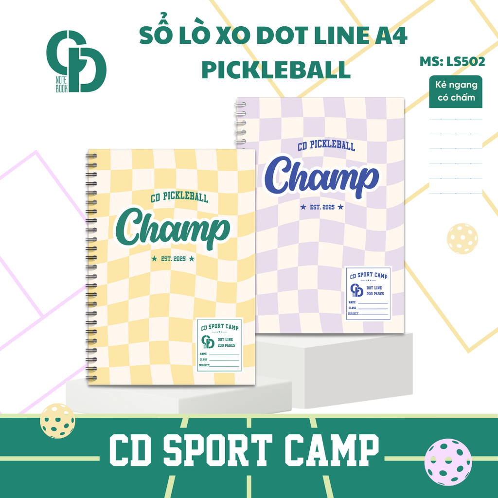 LS502 - Sổ lò xo Sport Pickleball, A4, Giấy kẻ ngang chấm, 200tr, ĐL: 100