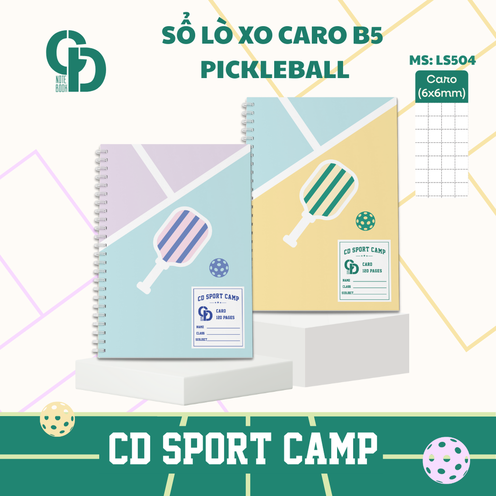 LS504 - Sổ lò xo Sport Pickleball, B5, Giấy kẻ caro, 120tr, ĐL: 100