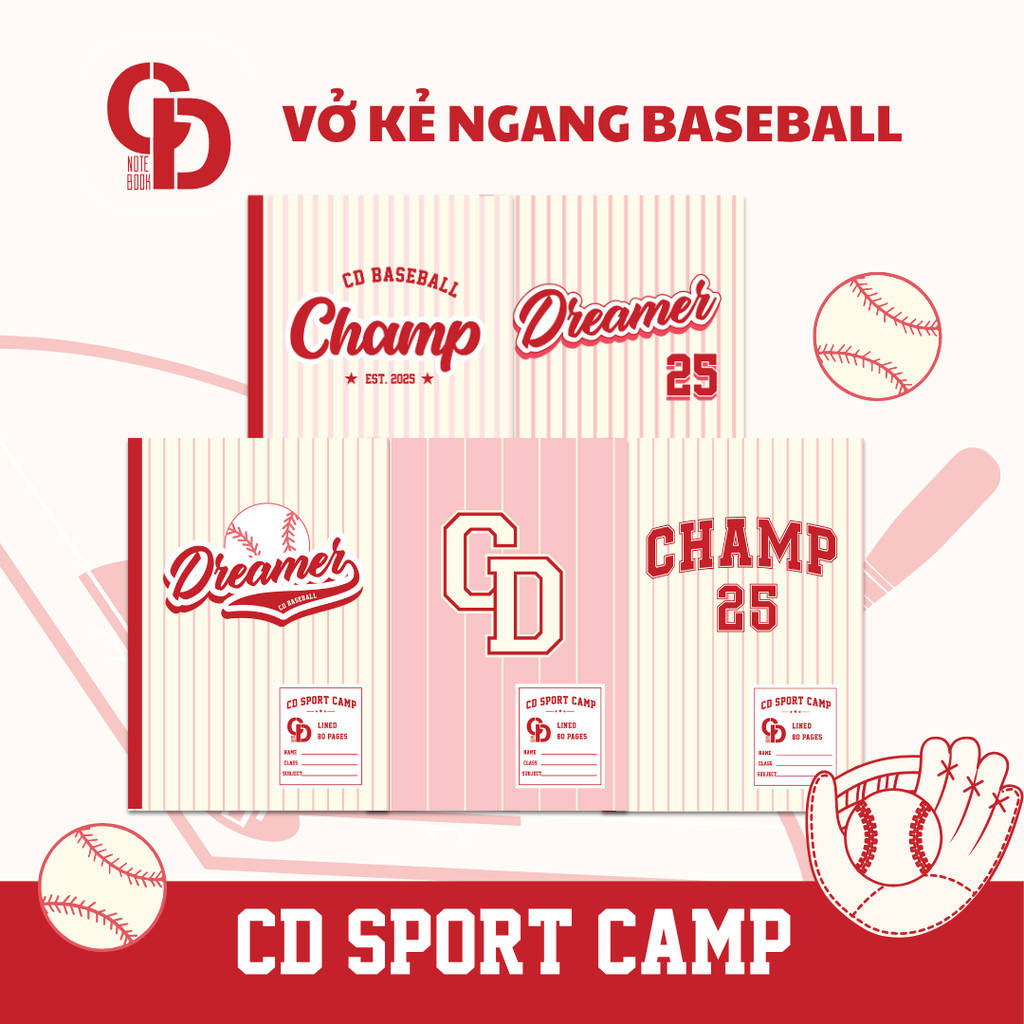 * Tên sản phẩm: Vở học sinh kẻ ngang CD Sport Camp Baseball