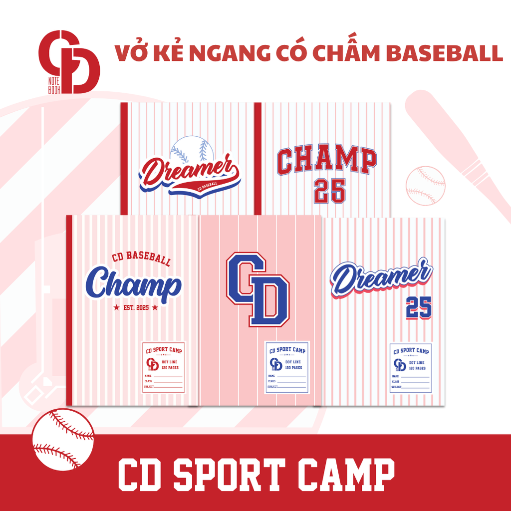* Tên sản phẩm: Vở học sinh kẻ ngang CD Sport Camp Baseball