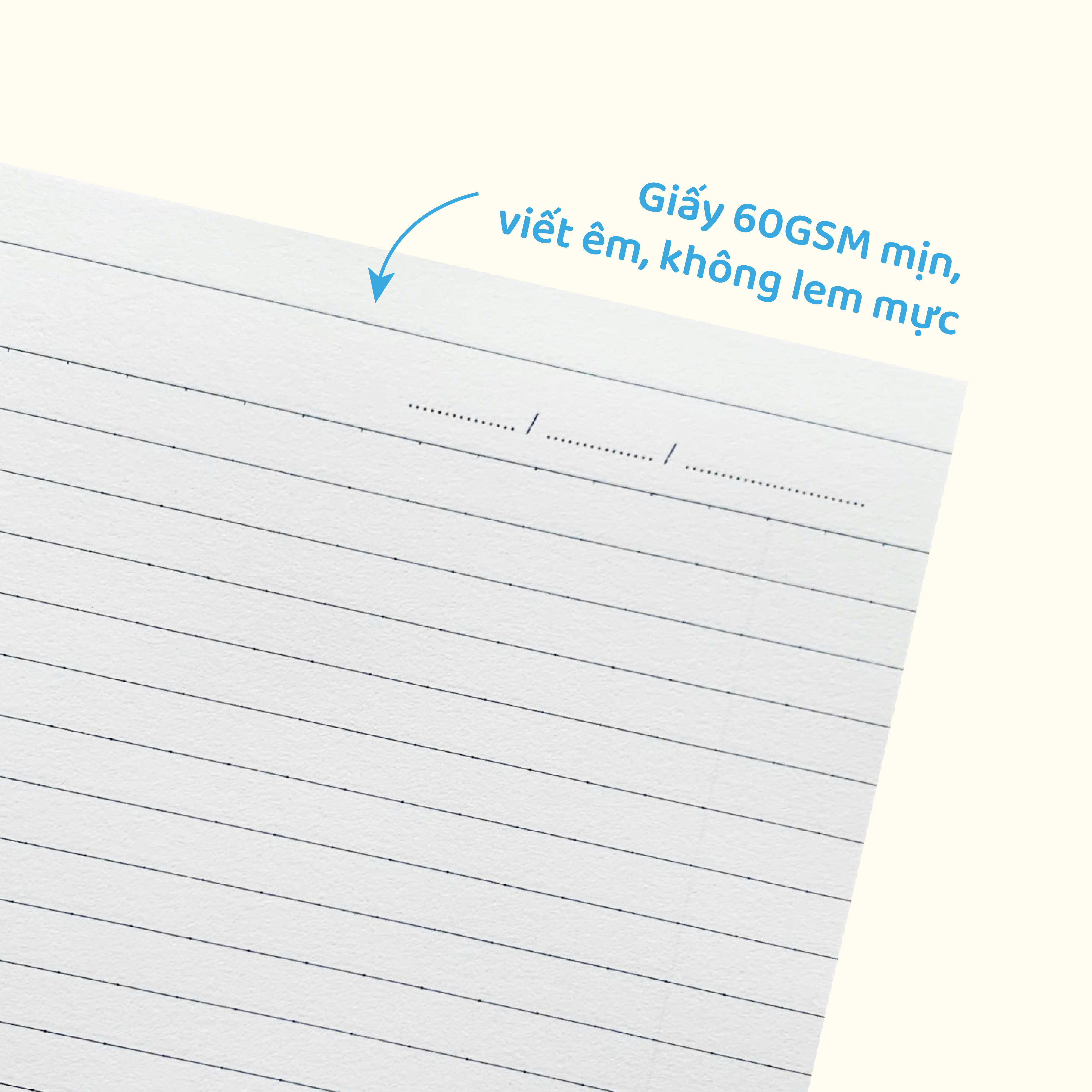 - Giấy 60GSM mịn, viết êm, không lem mực