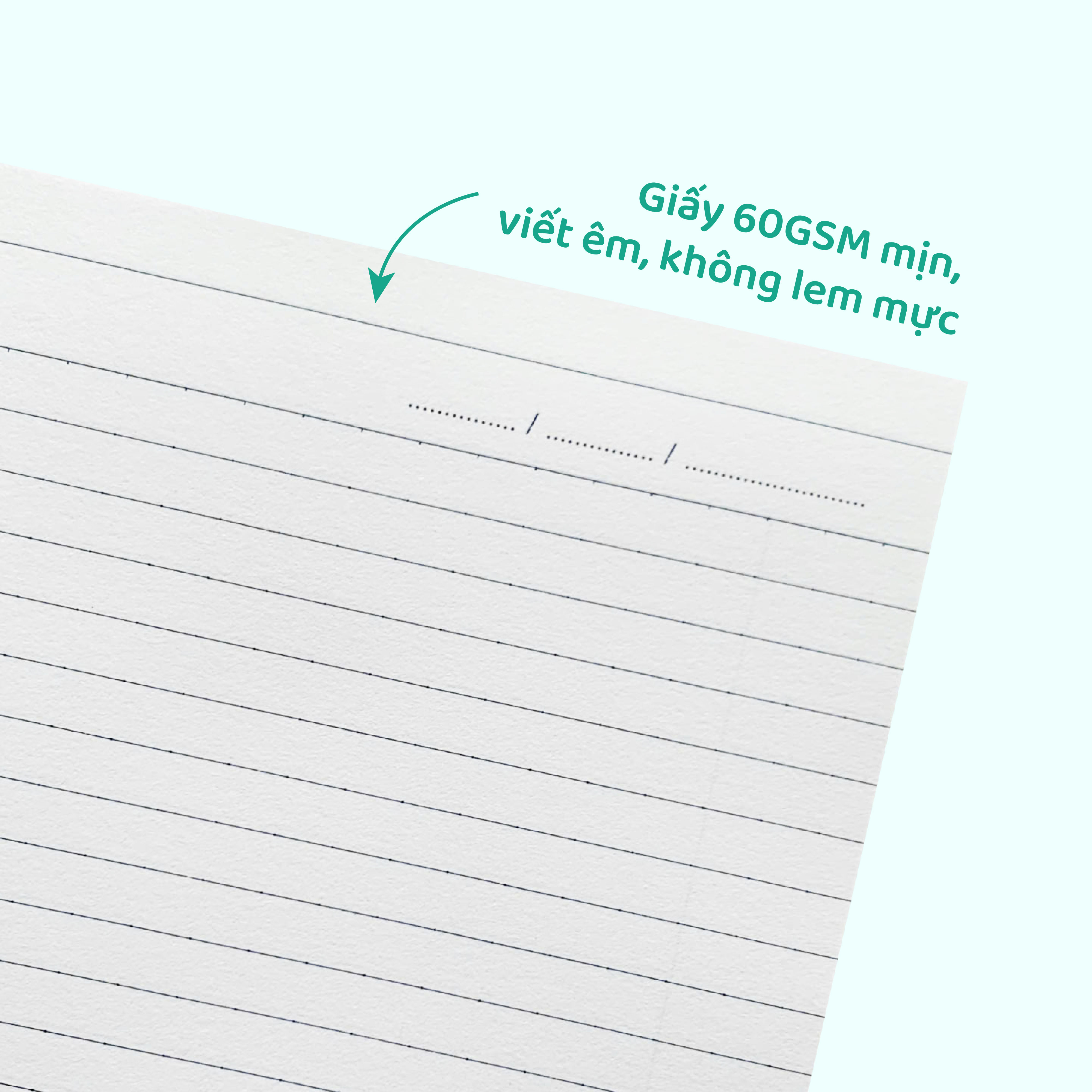 - Giấy 60GSM mịn, viết êm, không lem mực