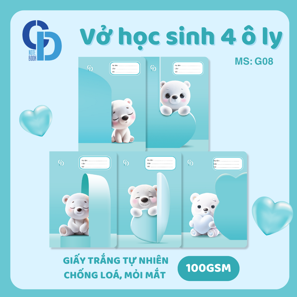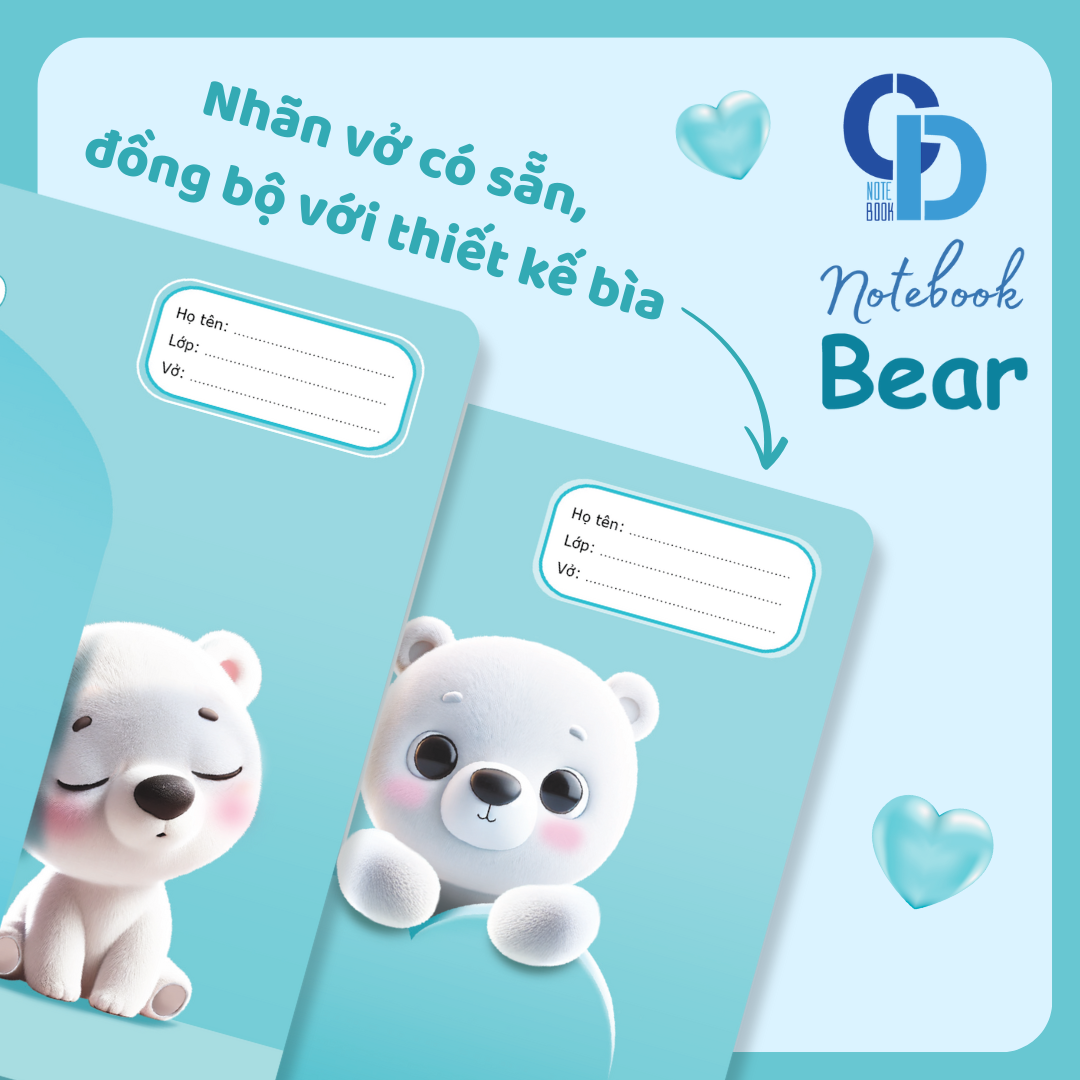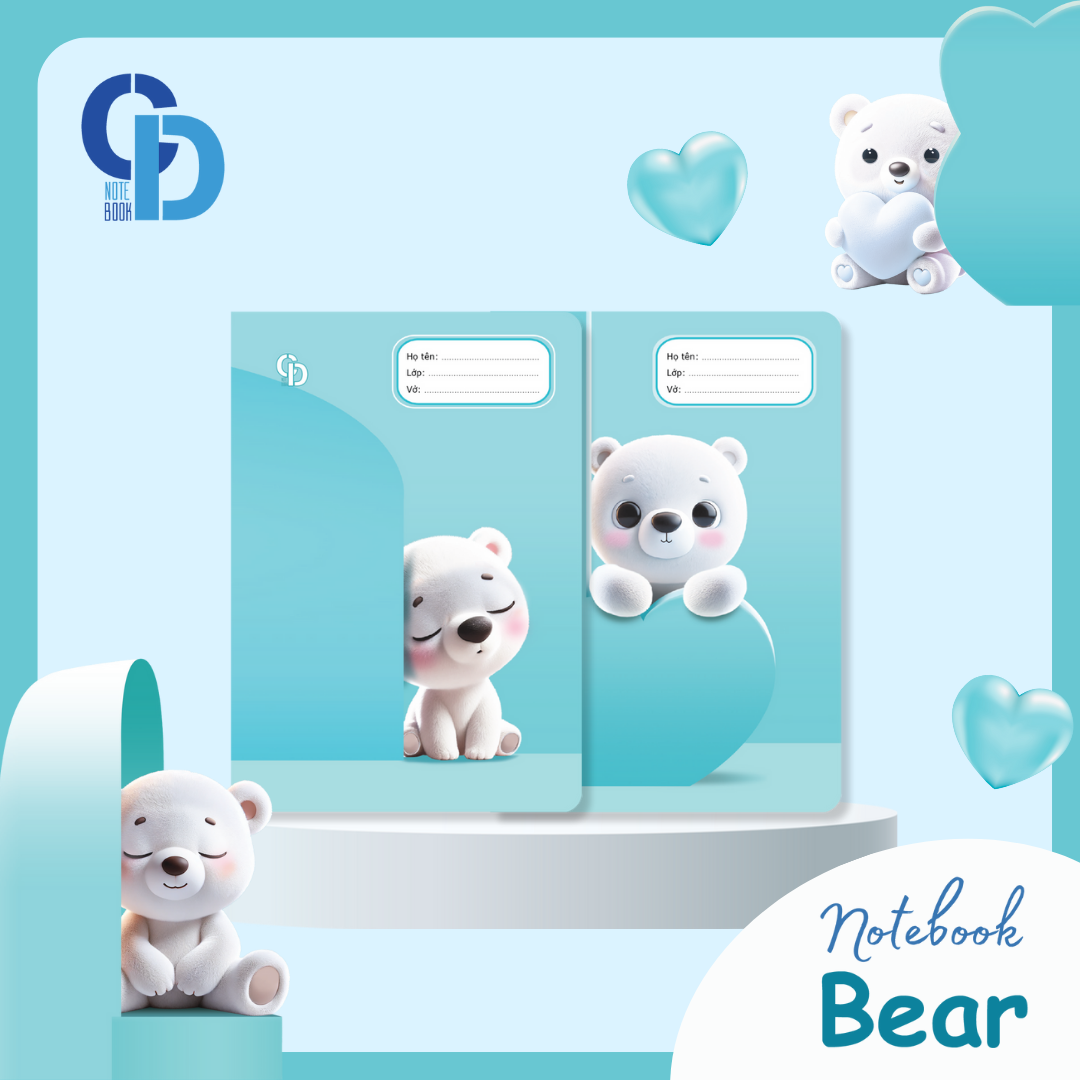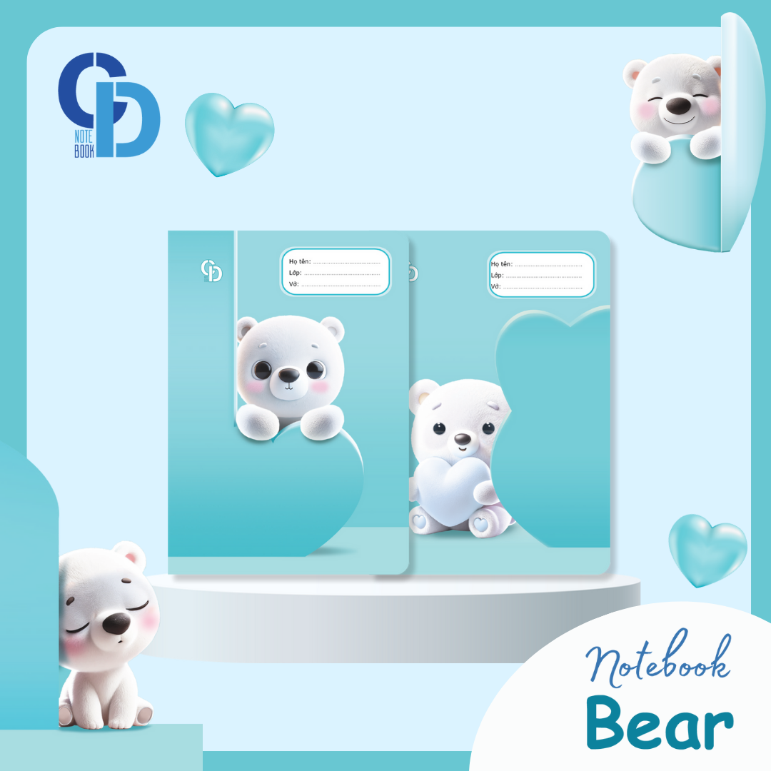 - Tên sản phẩm: Vở 4 ly CD NoteBook 3D Bear 48 trang 100GSM - Mã số: G08