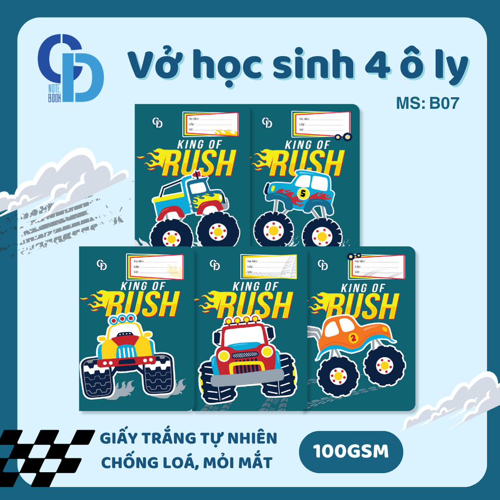 - Tên sản phẩm: Vở 4 ly CD NoteBook Racer Xanh lục 48 trang 100GSM - Mã số: B07